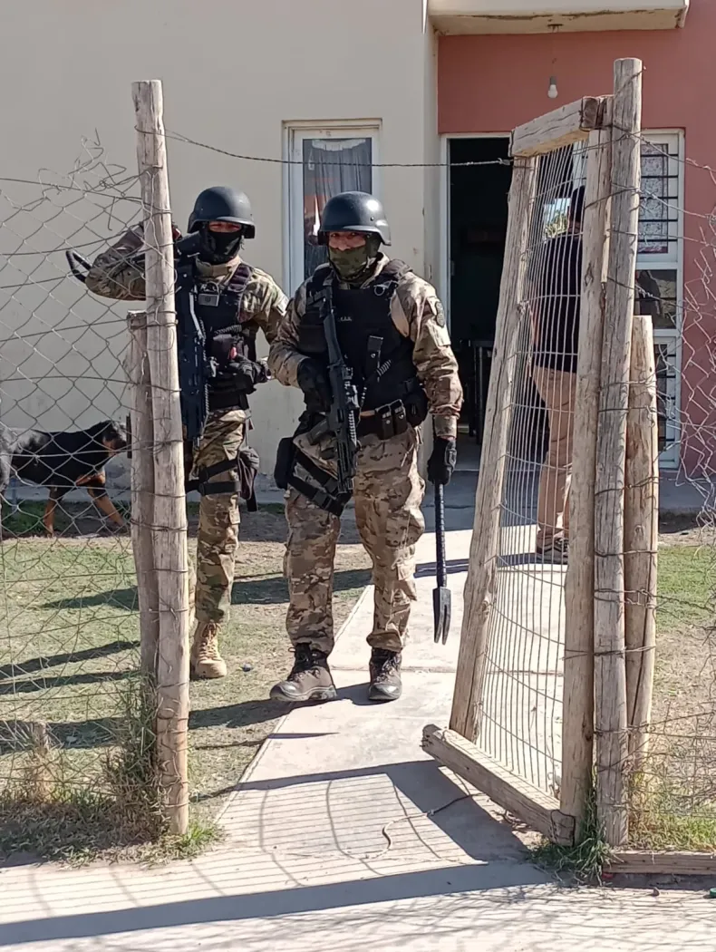 Luego del crimen ocurrido en horas de la medianoche de este viernes, tras un tiroteo entre bandas, en el interior del Barrio Teresa de Calcuta, las autoridades procedieron a realizar numerosos allanamientos en Rawson. Los procedimientos se dieron en el interior de los barrios La Estación, en el Valle Grande y, también, en la Villa 17 de Agosto.
