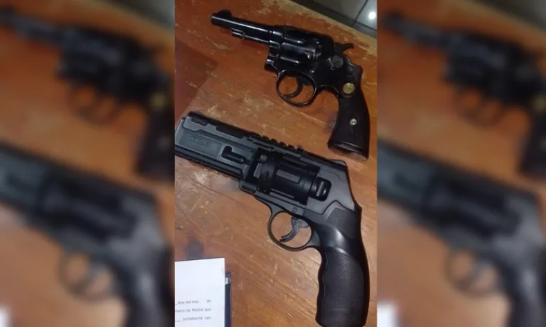 Las armas incautadas fueron trasladadas a la comisaría, para luego continuar con las pericias.