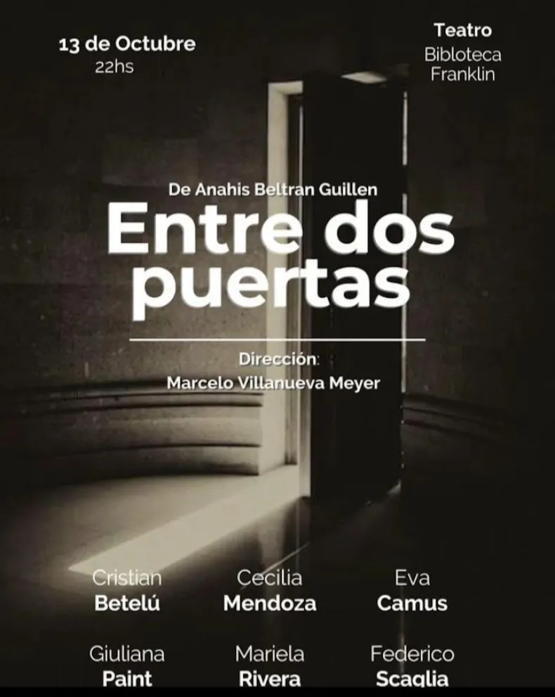 El próximo viernes 13 de octubre, la sala de teatro de la Biblioteca Franklin se convertirá en el escenario de una experiencia única con el estreno de la obra "Entre dos puertas".