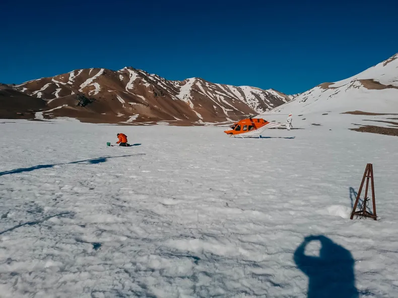 Los lugares de medición se ubican cerca de estaciones nivometeorológicas operadas por el Departamento de Hidráulica. En esta temporada del año, el acceso a estos puntos solo es factible mediante el uso de helicópteros proporcionados por la provincia. Además, es esencial seleccionar un momento óptimo desde el punto de vista climático, conocido como una "ventana climática", para llevar a cabo los vuelos a las regiones de Calingasta e Iglesia.