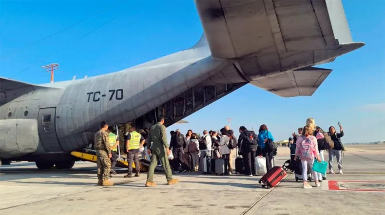 En las últimas horas, un grupo de 49 argentinos evacuados de Israel ya se encuentran en vuelo hacia la ciudad de Roma (Italia) para luego regresar al país, en el marco del operativo "Regreso Seguro". Este operativo es organizado en forma conjunta por la Cancillería, el Ministerio de Defensa y las Fuerzas Armadas tras los ataques del grupo islamista palestino Hamas en territorio israelí.