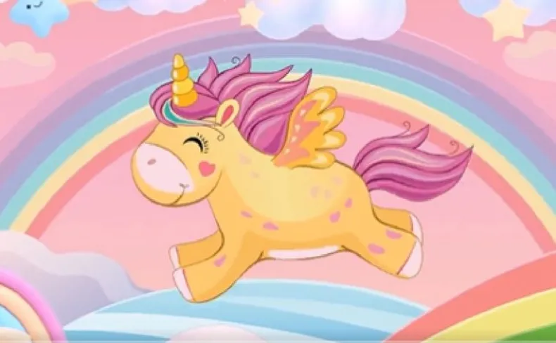 Nubes de colores, varios arcoiris, coloridas estrellas con rostros sonrientes y simpáticos unicornios alados revoloteando por ese imaginario escenario, es el fondo de un fuerte mensaje que aparece a los 3 segundos de iniciar el video.