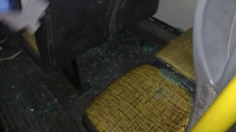 Si bien los vidrias se reventaron violentamente con el piedrazo no hubo que lamentar heridos graves si el gran susto ante el reventon de las ventanillas.