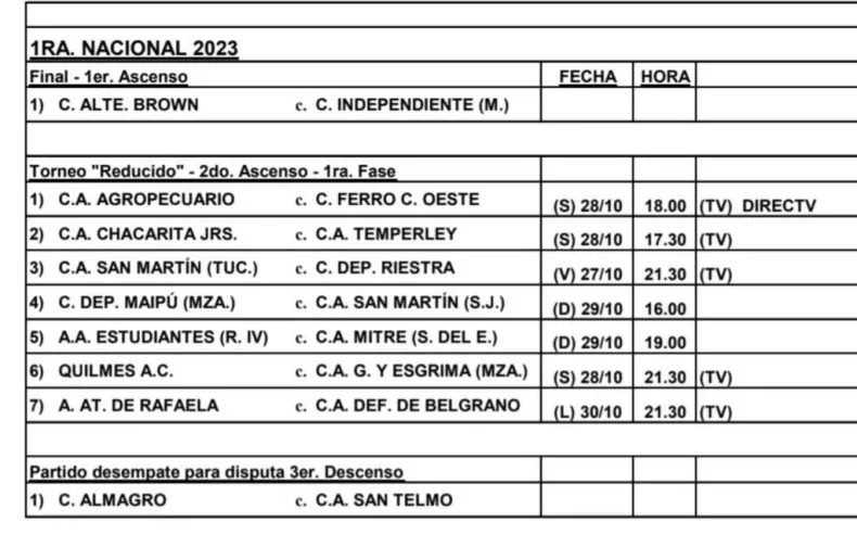 Este viernes cofirmaron el cronograma de partidos, días y horarios del reducido de la Primera Nacional, donde saldrá otro de los ascensos a la máxima categoría del fútbol argentino.