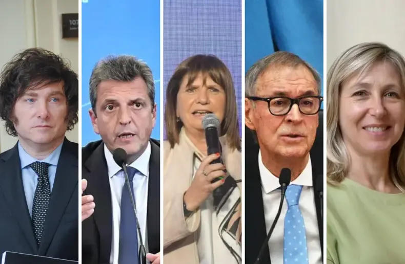 Los candidatos son: el diputado nacional de La Libertad Avanza, Javier Milei; Sergio Massa; la ex ministra de Seguridad y presidenta del PRO, Patricia Bullrich, el gobernador de Córdoba, Juan Schiaretti, y Myriamm Bregman por el Frente de Izquierda-Unidad (FIT-U).