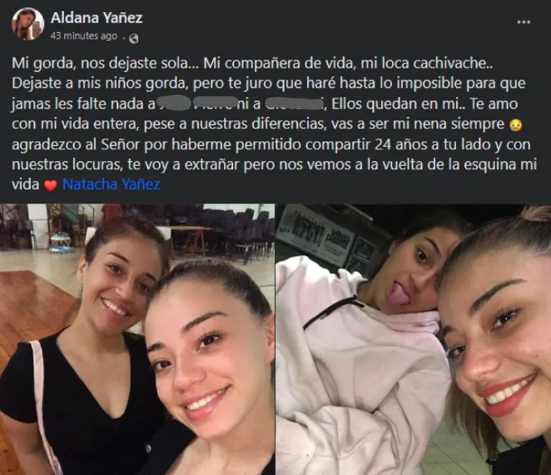 Quienes compartieron la vida y los momentos más preciosos con Natacha han expresado su dolor y su amor a través de las redes sociales. Una emotiva publicación la hermana indica: