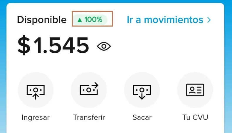 Si el ahorrista decide dejar sus pesos "sin tocar" durante 30 días, como si fuera un plazo fijo, recibirá un interés de 100% de TNA, que representa una ganancia de 8,22% mensual.