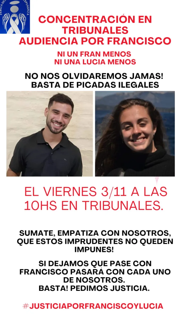 Ayelén Márquez, hermana del fallecido, comentó a Zonda Diario que "la concentración es porque la otra parte ha pedido juicio abreviado. Por eso, nos van a acompañar familiares de Lucía Rubiño y la Asociación Familias del Dolor. La idea es que la sociedad sanjuanina se sume a esto, para apoyarnos y ser la voz que apagaron de Fran, como así también la voz nuestra".