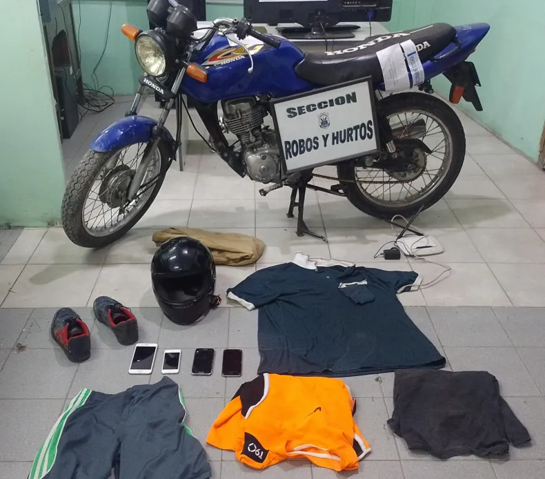 Además, lograron secuestrarles las prendas de vestir que utilizaron en robo, la moto en la que se movilizaban y, los teléfonos celulares, que luego fueron reconocidos por los damnificados.