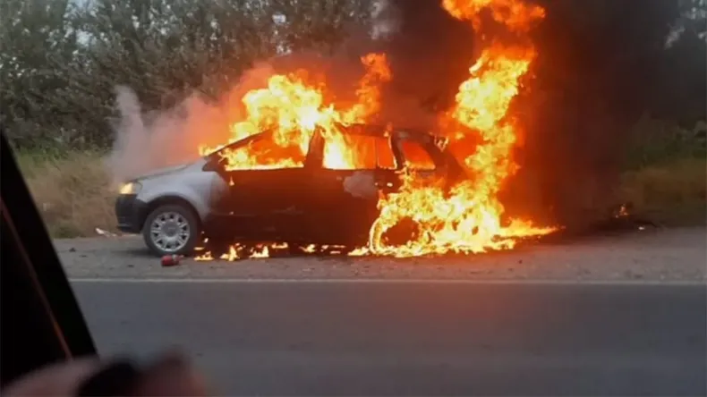 Un auto se incendió en calle Divisoria y Entre Ríos, en el departamento Caucete.