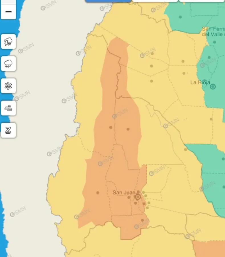 El Servicio Meteorológico Nacional emitió una advertencia de nivel naranja por viento Zonda para este viernes en San Juan. Se anticipan vientos con una velocidad promedio de entre 60 y 90 km/h y una temperatura máxima de 36 grados.