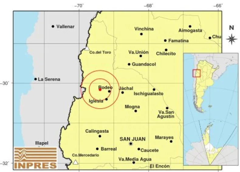 Según los datos publicados por el INPRES, el movimiento tuvo epicentro 171km al noroeste de San Juan y 26km al oeste de Rodeo, siendo esta localidad donde más se sintió. La magnitud del temblor fue de 4.3 grados y la profundidad de 125 kilómetros.