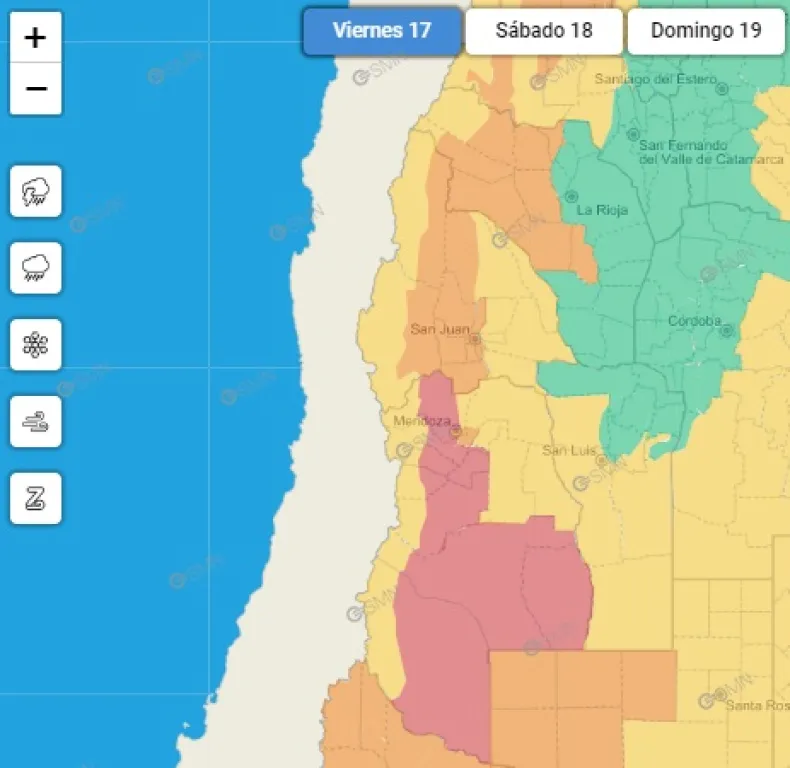 Por su parte, desde el Servicio Meteorológico Nacional, emitieron una alerta naranja. Asimismo, destacaron que "en la provincia se esperan vientos del sudoeste con velocidades entre 45 y 60 km/h, con ráfagas que pueden superar los 75 km/h".