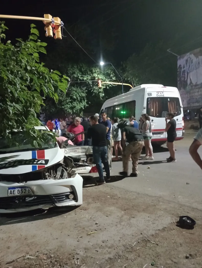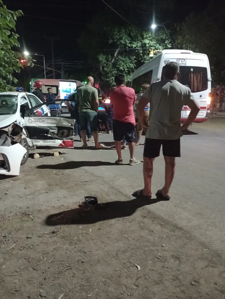 En horas de la madrugada de este lunes, post elecciones, se registró un fuerte choque que involucró a tres vehículos, entre ellos, un patrullero de la Policía de San Juan.