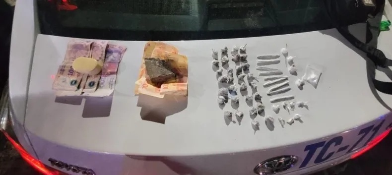 Al momento de realizarles una requisa de urgencia, se les secuestró de entre sus prendas una sustancia de color blanco, lo que motivó la convocatoria del personal del Departamento Drogas Ilegales.
