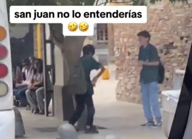 El fenómeno viral "San Juan, no lo entenderías" ha tomado impulso en las redes sociales, particularmente en TikTok y Twitter. En un video compartido por la cuenta de Twitter "Out Of Context San Juan", se observa a dos estudiantes realizando un divertido baile en la entrada de una escuela en Rawson.