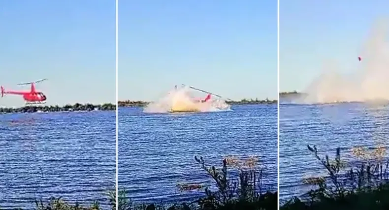 El helicóptero accidentado fue socorrido por efectivos de Prefectura de Ramallo que, con la colaboración de una embarcación civil, extrajeron a cinco ocupantes del interior de la nave.