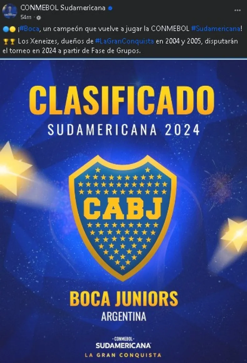 Boca Juniors no pudo clasifcar a la Libertadores, pero jugará la Copa Sudamericana en el 2024.