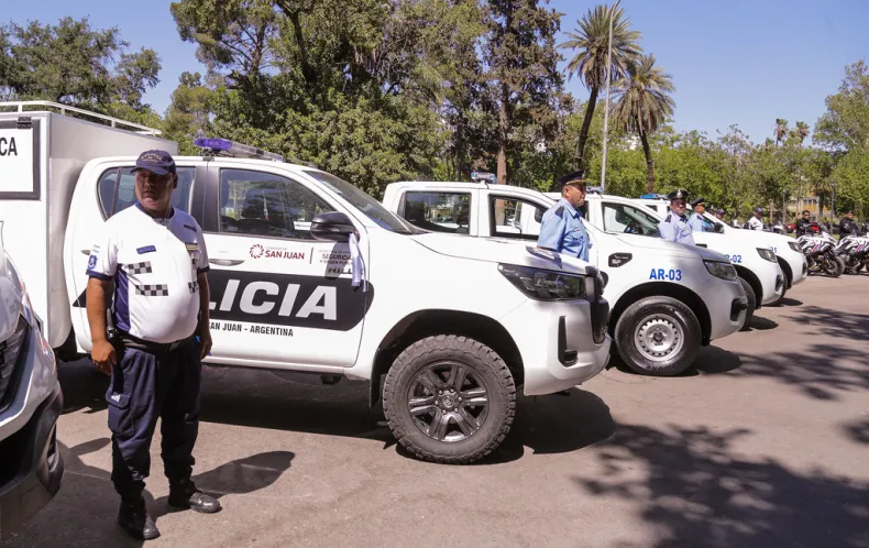 La ceremonia comenzó con la bendición del Capellán Rómulo Cámpora. Durante el evento, el Gobierno de San Juan llevó a cabo la entrega simbólica de las llaves del parque automotor adquirido y del siguiente equipamiento: