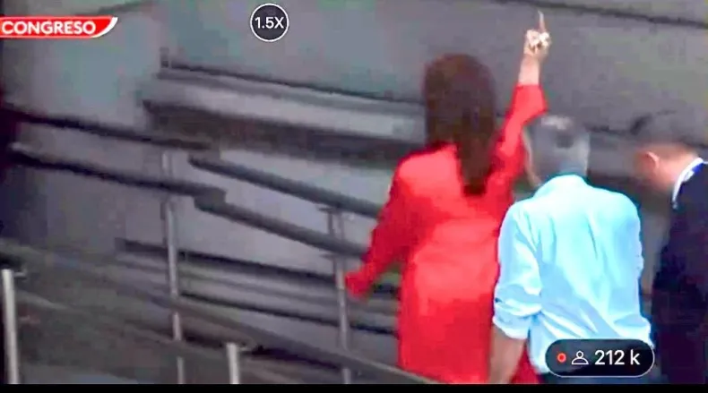 La vicepresidenta Cristina Fernández de Kirchner realizó hoy un gesto obsceno al ingresar al Congreso para la asunción de Javier Milei.