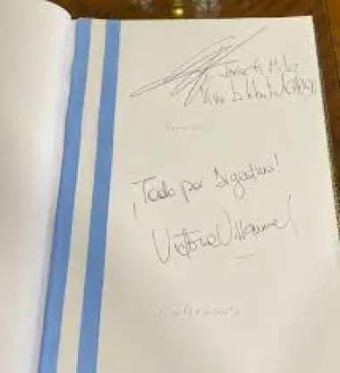 "Viva la libertad carajo", fue la frase que escribió Javier Milei en uno de los dos libros que debió firmar. Ambos debieron dejar su firma tanto en el libro de la Cámara de Senadores de la Nación como el de la Cámara de Diputados. Por su parte, Victoria Villarruel expresó: "Todo por Argentina".