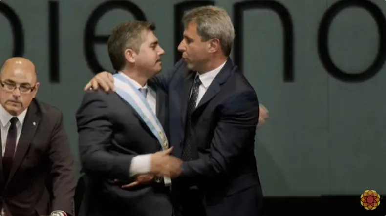El gobernador saliente le entregó la banda al gobernador electo en un acto realizado en el Teatro del Bicentenario.