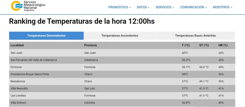 La provincia se ubica en primer lugar y es la única que tiene 40 grados en todo el país.