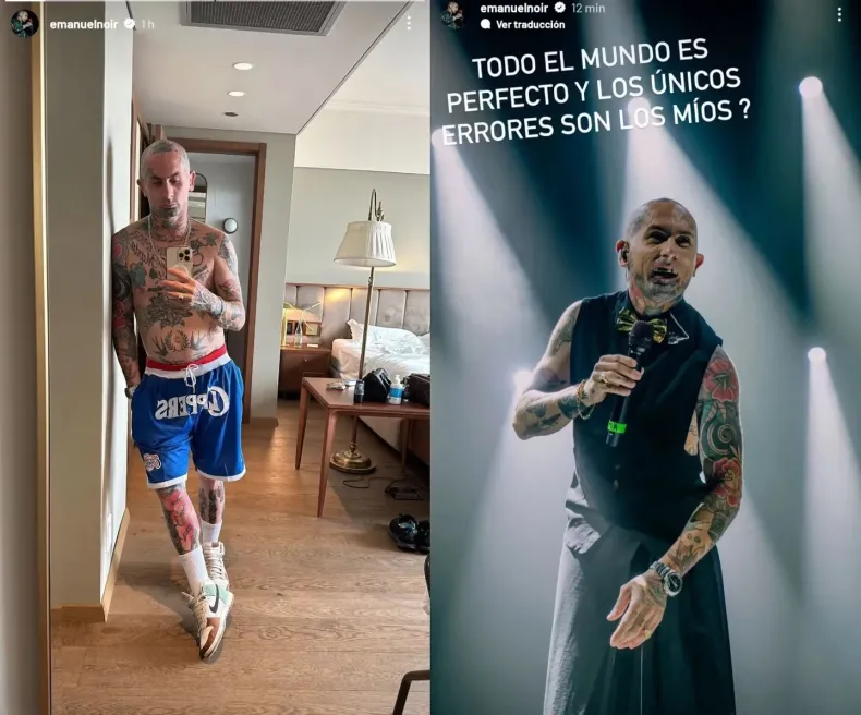Este domingo por la mañana, el cantante reapareció en sus redes sociales y demostró que lo liberaron. A través de sus historias de Instagram, primero publicó una curiosa foto donde se lo ve posando sin remera ante el espejo y después lanzó un contundente mensaje: "¿Todo el mundo es perfecto y los únicos errores son los míos?".