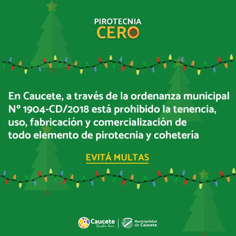 La Municipalidad de Caucete le comunica a todos los cauceteros a ser consciente de los efectos nocivos de la pirotecnia y a respetar la normativa local, que es "no a la pirotecnia".
