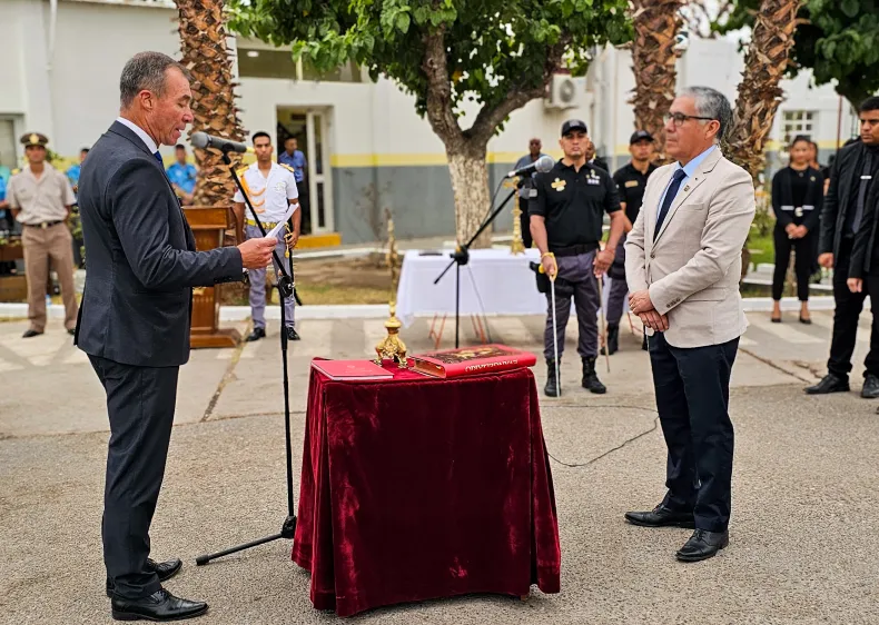 Por la tarde del martes 19, el Dr. Enrique Delgado tomó juramento en la Plaza de Armas de la Institución, frente a autoridades provinciales, nacionales y personal del SPP.