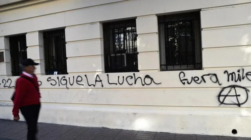 Atacan la embajada Argentina en Chile, con mensajes contra el presidente Javier Milei.