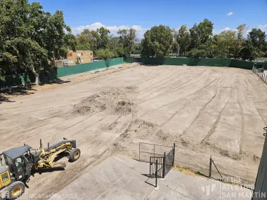 Serán dos canchas, las cuales serán ubicadas sobre el sector oeste del predio a un costado de las que ya están. Una será de fútbol 11 y la otra de dimensiones mas pequeñas para fútbol 5. Lo que primero se realiza es la compactación del piso para dejarlo en condiciones antes de poner la carpeta sintética. Esto servirá para el trabajo de inferiores