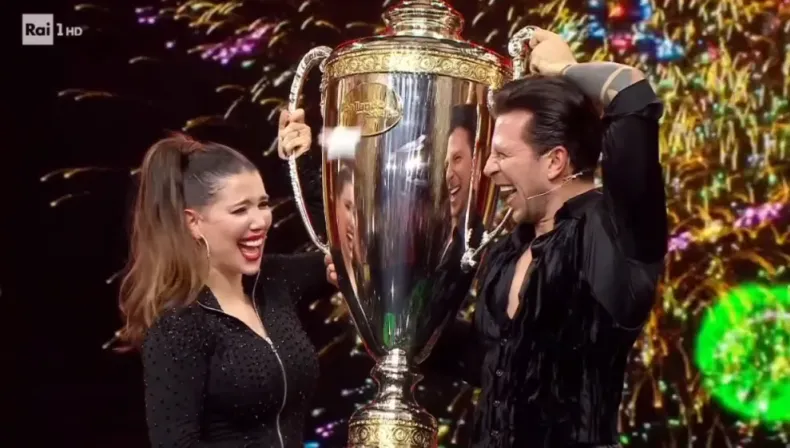 Después de varios meses compitiendo en en certamen italiano, la empresaria salió campeona junto a su bailarín Pasquale La Rocca con el 70% de los votos de la gente.