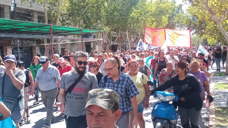 La movilización se lleva adelante por las calles del microcentro sanjuanino. La concentración se llevó adelante desde las 10 en Plaza 25 de Mayo.