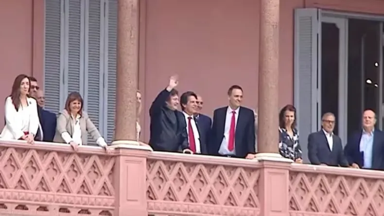 Milei y sus ministros saludaron a la gente desde el balcón de Casa Rosada