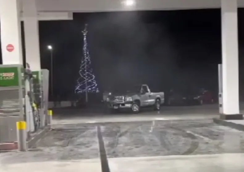 Una camioneta puso en peligro a las personas que estaban en una estación de servició al derrapar varias veces y hacer piruetas en el lugar.