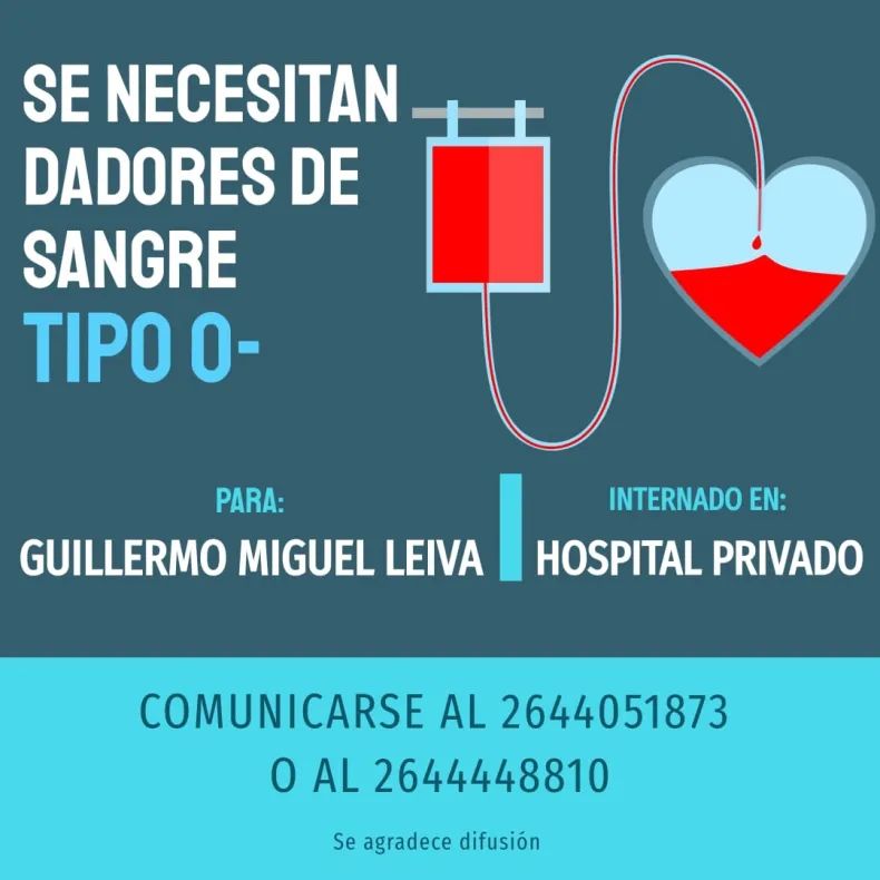 Piden dadores de sangre para un sanjuanino con una complicada patología