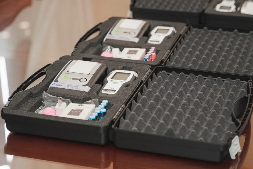Se trata de equipos "Dräger Alcotest 7510AR", que llegaron a San Juan, por gestión de la ministra de Gobierno, Laura Palma, y que, a través de la Secretaría de Tránsito y Transporte, se entrega a las autoridades de la Secretaría de Seguridad, a poco de cumplirse el primer mes de gobierno de Marcelo Orrego.