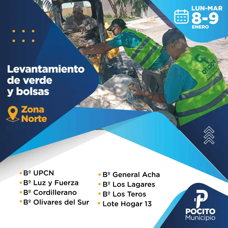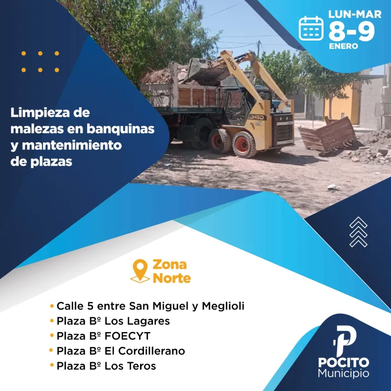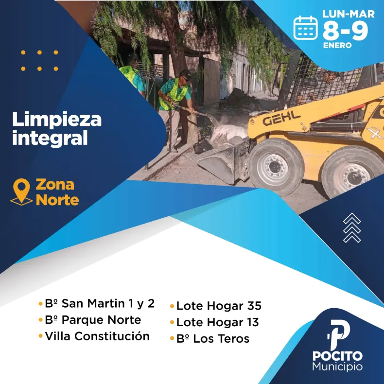La Municipalidad de Pocito continuará esta semana con los operativos de limpieza integral en todo el departamento y ya dieron a conocer el cronograma para visitar a los diferentes barrios durante este lunes y martes.