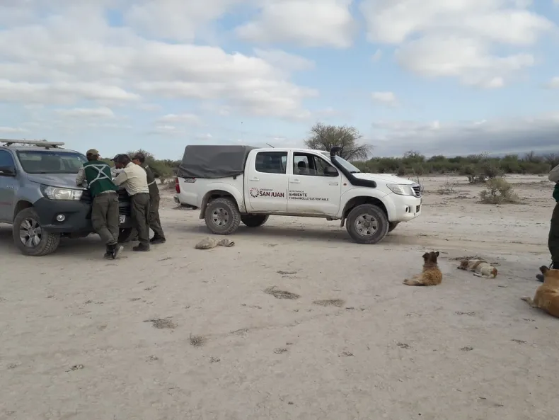 También se encontraron seis canes en el vehículo, presumiblemente utilizados para cazar los quirquinchos.