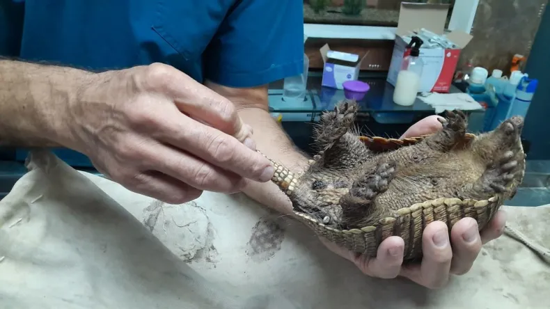 Durante un control de huella en el departamento 25 de Mayo, los inspectores de Flora y Fauna interceptaron un vehículo en el que hallaron tres quirquinchos vivos en condiciones críticas, con mordeduras de perro.
