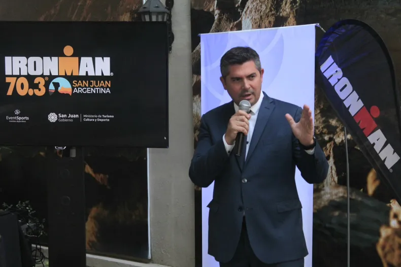 El gobernador, Marcelo Orrego, hizo la presentación del Ironman 70.3 de este 2024. Será la tercera vez que la provincia albergue esta competición. "Nos llena de orgullo", dijo el mandatario.