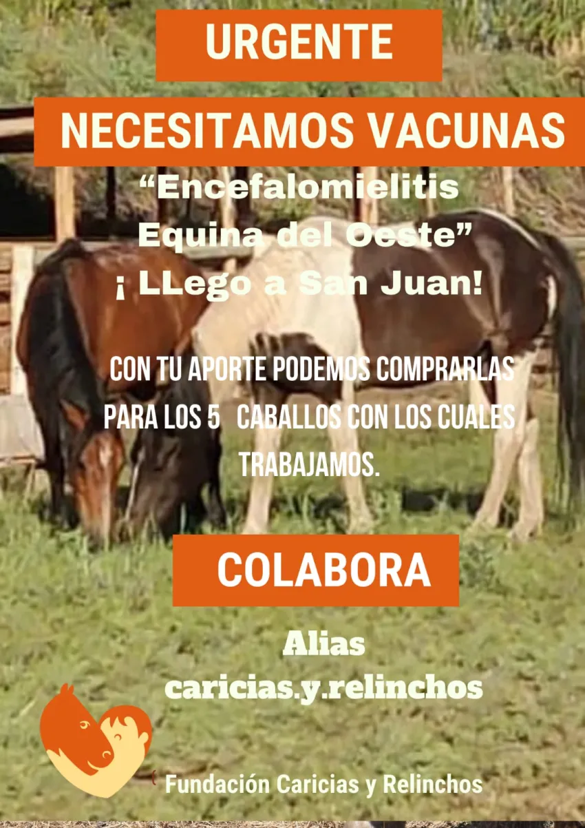 La Fundación Caricias y Relinchos pide colaboración para poder vacunar a sus seis caballos contra la encefalomielitis equina, enfermedad que ha tenido brotes en diferentes provincias argentinas.
