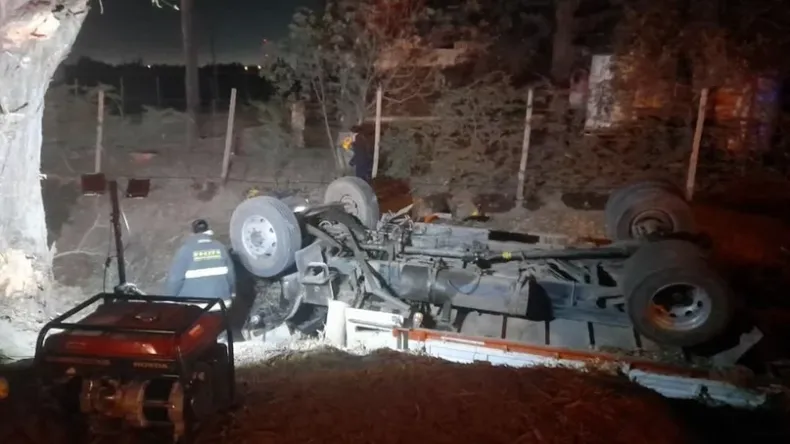 En la noche de este viernes, un camión conducido por un hombre identificado como Ángel Vargas, perdió el control y terminó volcado en un canal. El incidente tuvo lugar alrededor de las 22:00 en Calle 11, al este de la Ruta 40, en el departamento de Pocito.