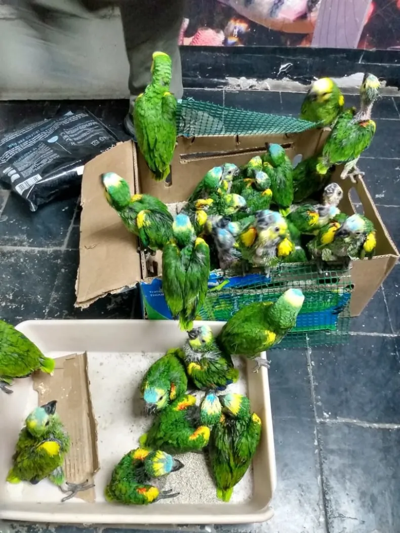 Rescatan casi 100 loros que iban a ser vendidos ilegalmente por $5 millones