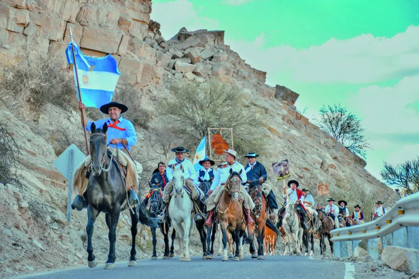 Estuvo todo el gauchaje. La Agrupación Gaucha Don Tolo que lleva el nombre de quien fuera abanderado cuando la Fiesta de la Tradición tenía por escenario el majestuoso paisaje del Cerro Viejo y en el mismo centro del pueblo en los albores de la década del 60. También la Agrupación Don Pivo, en memoria del maestro y recitador y uno de los iniciadores junto a la docente Nelly Táñez de Peñaloza, del Fogón en la Cuesta, más la Agrupación Santa Bárbara. Es decir las tres barriadas más importantes estuvieron representadas, el Centro, El Alto y el Barrio Olivares, respectivamente.