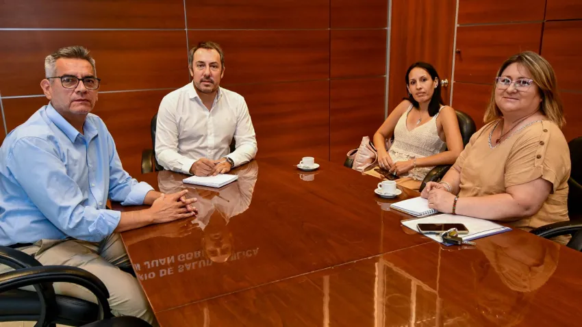 El Secretario Técnico, Dr. Alejandro Navarta junto al Secretario de Medicina Preventiva, Emergencia y Catástrofe, Dr. Pablo Arroyo y recibió a las profesionales del Colegio de Instrumentadores Quirúrgicos de San Juan integrado por Daniela Montaña y Gabriela Tello.