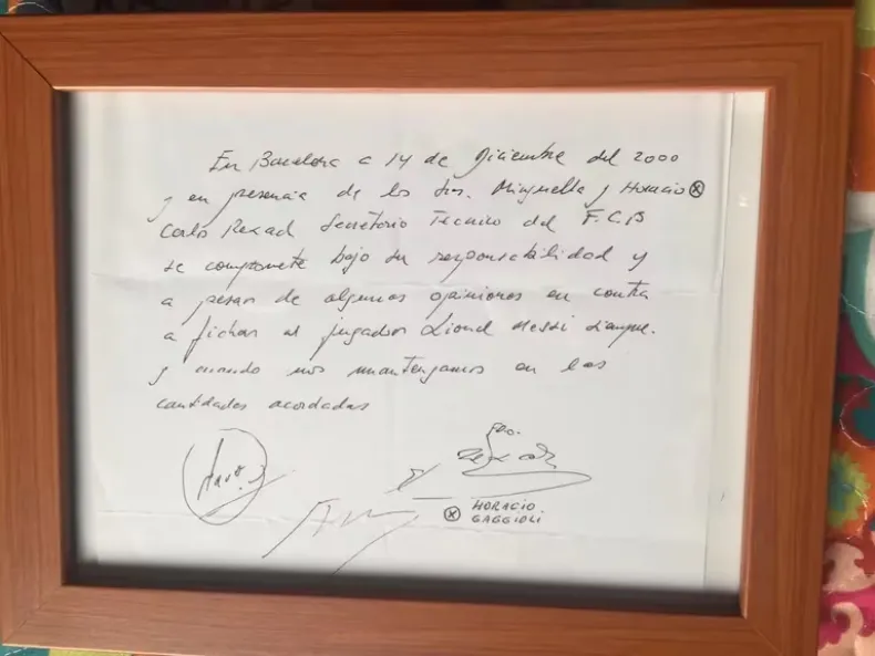 La servilleta, donde se lee el compromiso de Rexach de fichar a Messi "siempre y cuando nos mantengamos en las cantidades acordadas", se convirtió en un símbolo de la audacia y la visión del club, así como del talento incipiente del joven argentino.