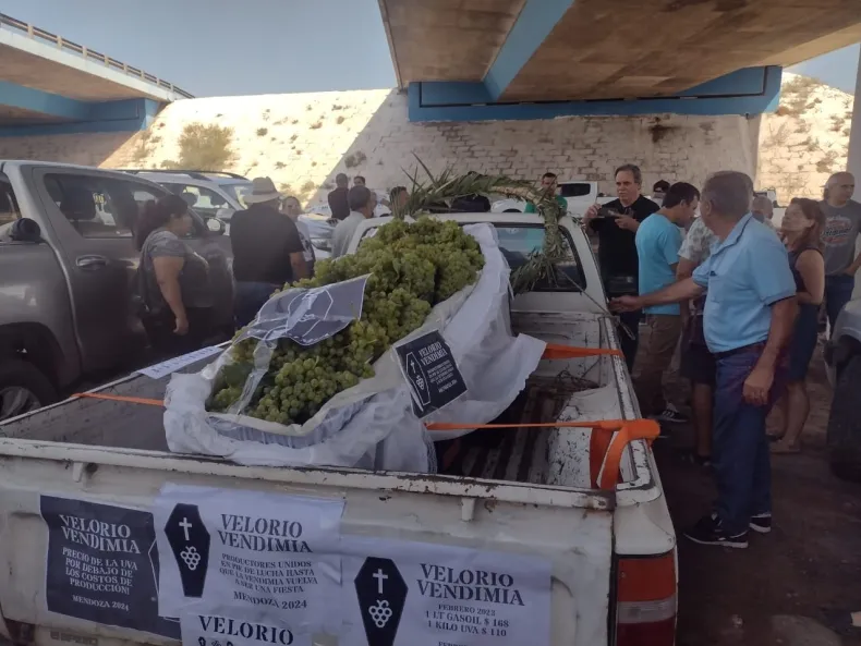Representantes de la Asociación de Viñateros Independientes de San Juan participaron de una movilización en la provincia de Mendoza por el precio de la uva.