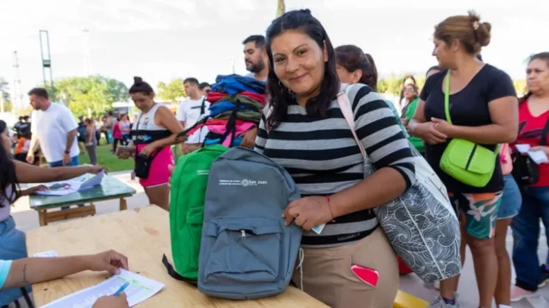 Con una gran sonrisa de los chicos y el entusiasmo de los más grandes, este miércoles en el Parque de Rivadavia, la municipalidad de este departamento, concretó en la mañana de hoy, la entrega de los kits escolares para todos los chicos que participaron de la Colonias de Verano, organizadas por el Ministerio de Familia y Desarrollo Humano de la provincia de San Juan.